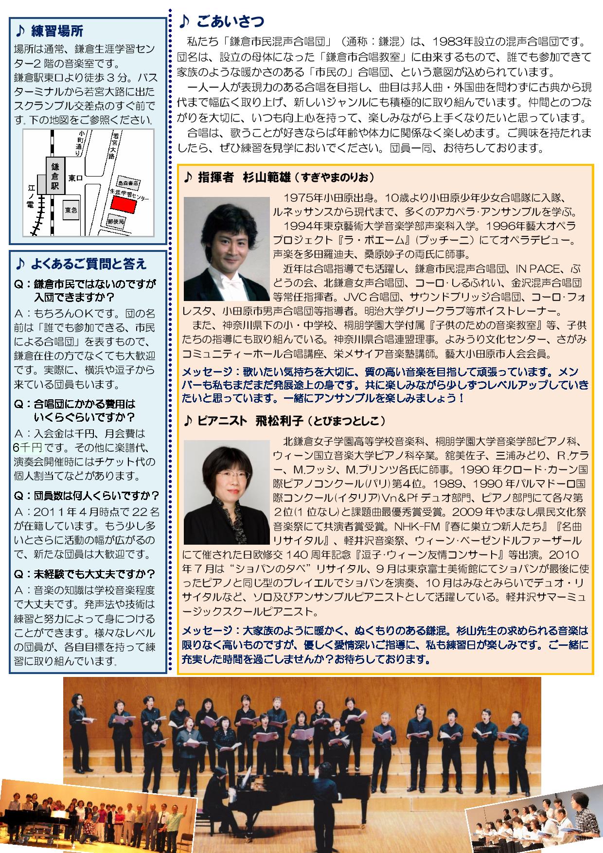 練習場所:鎌倉生涯学習センター音楽室/(2階) 他